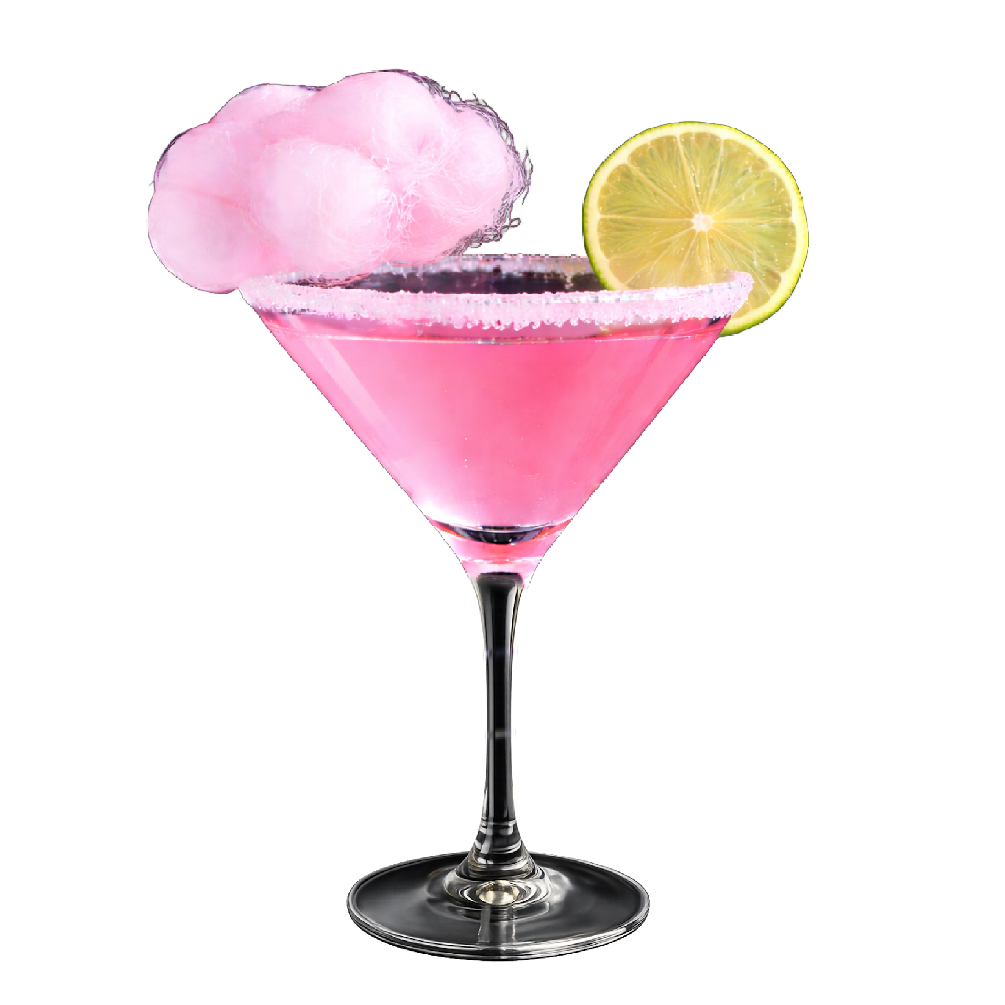 Vodka, Cranberry Juice, Triple Sec, Lime Juice, Cotton Candy Simple Syrup, and Cotton Candy Garnish.