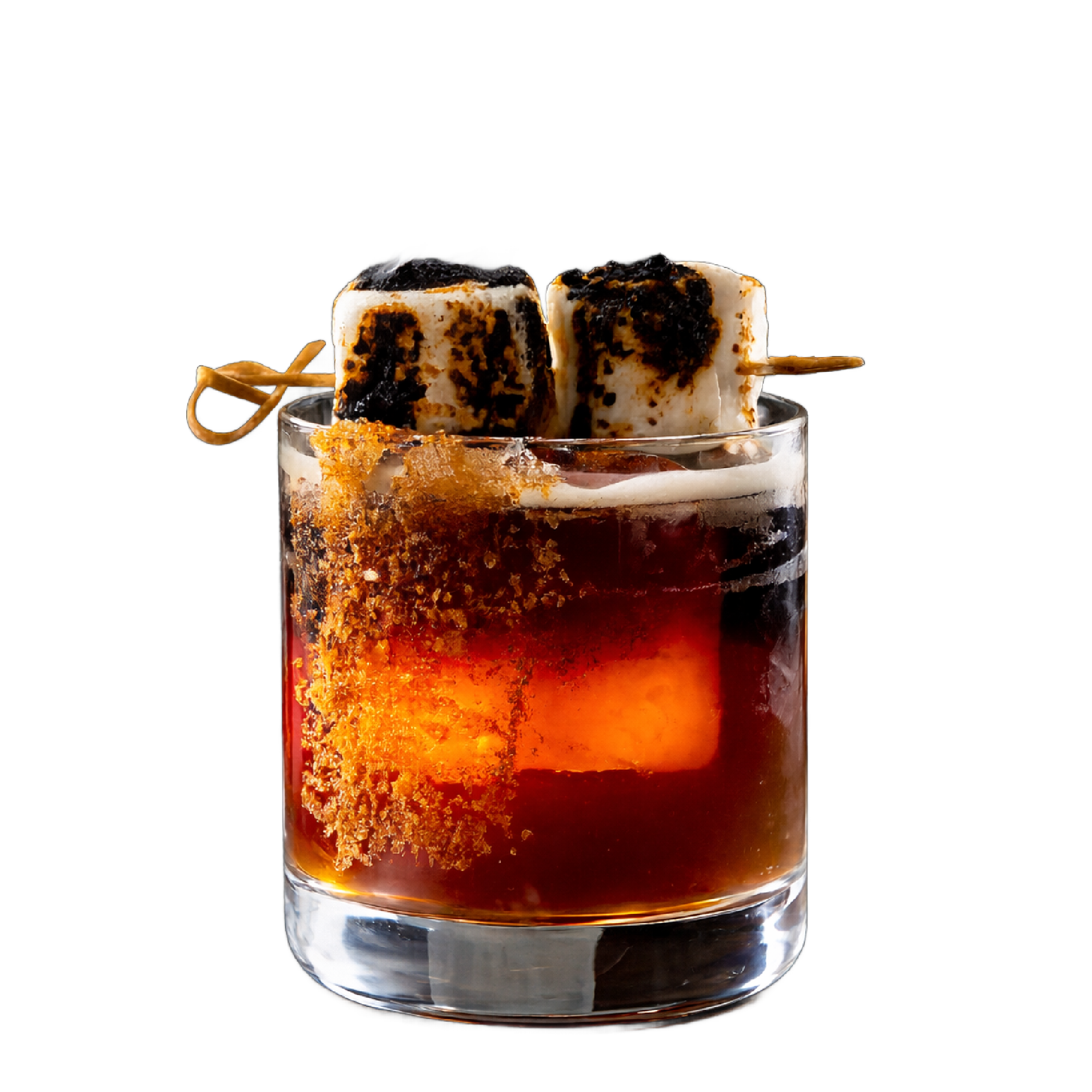 Bourbon, Toasted Marshmallow Syrup, Chocolate Bitters, Toasted Marshmallow Garnish.
